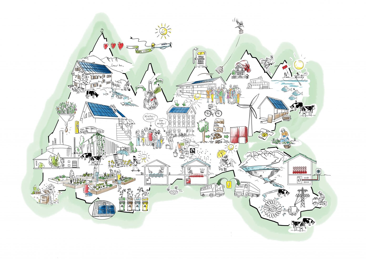 Bis 2050 soll Tirol unabhängig von fossilen Energieträgern und in der Lage sein, den gesamten Energiebedarf aus heimischen, erneuerbaren Ressourcen klimaschonend zu decken. Das ist das erklärte Ziel des Landes Tirol. Eine Herausforderung, die kreative Lösungsansätze, Mut zu neuen Wegen und einen gemeinsamen Perspektivenwechsel erfordert.