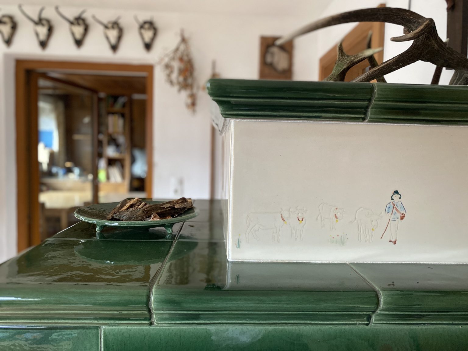 Auf dem von Martin gesetzten Ofen ist ein Almabtrieb zu sehen. Es zeigt Martin, auf der anderen Seite auch seine Söhne.